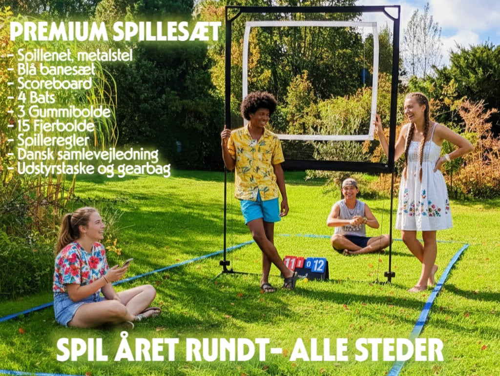 Udviklet i Danmark, som en helt ny aktivitet - en ny sport! Dansk design, høj kvalitet, officielle spilleregler og godkendt til brug i haven, på stranden, på gaden, i skolen, klubben og i hallen.